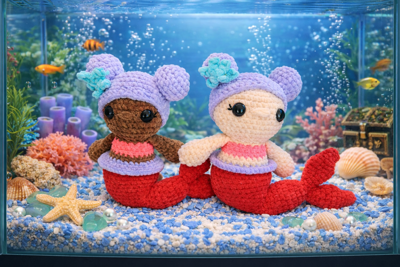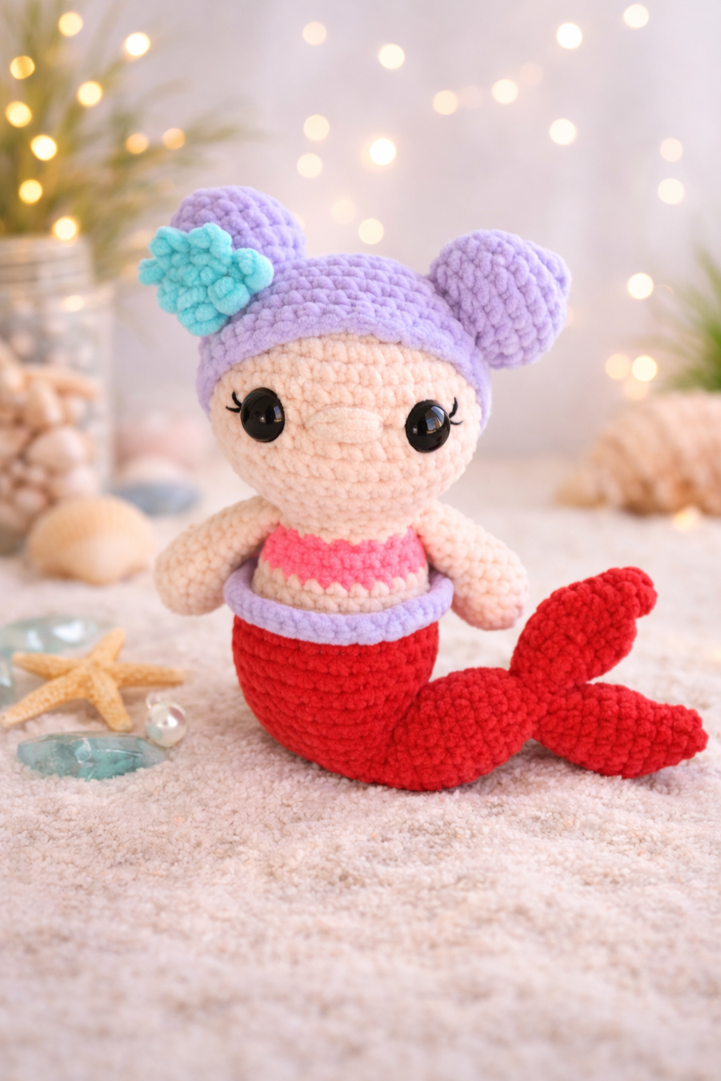 Sweet and fun crochet mermaid ready for fun, imaginary sea adventures!